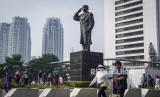 REPUBLIKA.CO.ID, JAKARTA -- Menteri BUMN Erick Thohir bersama Menteri Luar Negeri Retno Marsudi, Ketua DPR Puan Maharani dan Komisaris Utama PT Aviasi Pariwisata Indonesia (Persero) Triawan Munaf berolahraga bersama saat Hari Bebas Kendaraan Bermotor (HBKB) atau Car Free Day (CFD) di kawasan Jalan Jendral Sudirman, Jakarta, Ahad (5/6/2022).