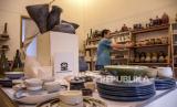 Pekerja menata kerajinan keramik di Workshop CH Pottery, Jalan Teuku Umar, Kota Bandung, Senin (6/6/2022). Berbagai jenis kerajinan keramik seperti mangkuk, gelas, dan vas yang dijual dengan harga Rp160 ribu hingga puluhan juta tersebut telah menembus pasar ekspor di Malaysia, Brunei Darussalam, Australia, Kanada dan Amerika. (FOTO : REPUBLIKA/ABDAN SYAKURA)