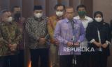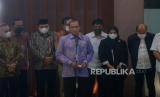 Ketua KPU Hasyim Asyari seusai memberikan keterangan pers hasil rapat konsultasi antara pimpinan DPR, Komisi II DPR dan KPU di Kompleks Parlemen, Senayan, Jakarta, Senin (6/6/2022). DPR dan KPU menyepakati durasi kampanye Pemilu 2024 berlangsung selama 75 hari dan menetapkan biaya tahapan sampai dengan pelaksanaan Pemilu yaitu sebesar Rp76,6 triliun. (FOTO : Prayogi/Republika.)