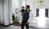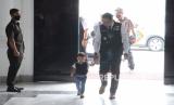 REPUBLIKA.CO.ID,BANDUNG -- Gubernur Jawa Barat Ridwan Kamil mengajak putra kecilnya Arkana Aidan Misbach ke kantornya di Gedung Sate, Kota Bandung, Senin (6/6).