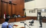 Terdakwa kasus dugaan pembunuhan berencana Kolonel Inf Priyanto mengikuti sidang dengan agenda pembacaan putusan di Pengadilan Militer Tinggi II Jakarta Timur, Jakarta, Selasa (7/6/2022). Majelis Hakim Pengadilan Militer Tinggi II Jakarta Timur memvonis Kolonel Inf Priyanto dengan hukuman penjara seumur hidup dan dipecat dari Dinas TNI karena terbukti melakukan pembunuhan berencana terhadap Handi dan Salsabila di kawasan Nagreg, Jawa Barat. Republika/Putra M. Akbar (FOTO : Republika/Putra M. Akbar)