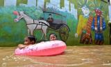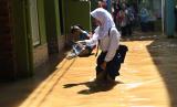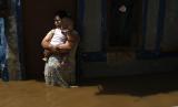 REPUBLIKA.CO.ID, JAKARTA -- Seorang ibu dan anaknya berdiri di depan rumahnya yang terendam banjir di Kebon Pala, Kampung Melayu, Jakarta, Selasa (7/6/2022). Badan Penanggulangan Bencana Daerah (BPBD) DKI Jakarta menyebutkan sebanyak 27 rukun tetangga (RT) di Ibukota terendam banjir setinggi 40-170 centimeter akibat luapan Sungai Ciliwung yang dipicu air kiriman dari Bogor dan Depok.