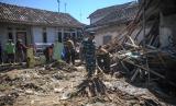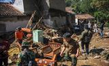REPUBLIKA.CO.ID, BANDUNG -- Anggota TNI dan relawan membantu menyelematkan berbagai barang milik warga pascabanjir bandang di Kampung Kaum Kidul, Ciwidey, Kabupaten Bandung, Jawa Barat, Selasa (7/6/2022). Banjir bandang yang terjadi pada Senin (6/6/2022) menyebabkan belasan rumah rusak ringan dan berat serta satu jembatan penguhubung antar desa terputus.