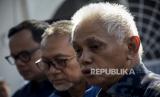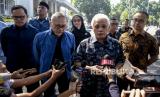 Ketua Majelis Pertimbangan Partai (MPP) Partai Amanat Nasional (PAN) Hatta Rajasa (kedua kanan) bersama Ketua Umum PAN Zulkifli Hasan (tengah) dan Ketua DPW PAN Jabar Desy Ratnasari (kedua kiri) berjalan keluar ruangan usai takziah di Gedung Pakuan, Jalan Pasir Kaliki, Kota Bandung, Selasa (7/6/2022). Petinggi Partai Amanat Nasional (PAN) bertakziah untuk menyampaikan belasungkawa secara langsung atas meninggalnya Emmeril Kahn Mumtadz atau Eril, putra sulung Gubernur Jawa Barat Ridwan Kamil. Foto: Republika/Abdan Syakura (FOTO : REPUBLIKA/ABDAN SYAKURA)