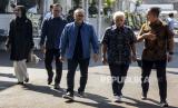 Ketua Majelis Pertimbangan Partai (MPP) Partai Amanat Nasional (PAN) Hatta Rajasa (kedua kanan) bersama Ketua Umum PAN Zulkifli Hasan (tengah), Ketua DPW PAN Jabar Desy Ratnasari (kiri) dan Wali Kota Bogor Bima Arya (kedua kiri) berjalan keluar ruangan usai takziah di Gedung Pakuan, Jalan Pasir Kaliki, Kota Bandung, Selasa (7/6/2022). Petinggi Partai Amanat Nasional (PAN) bertakziah untuk menyampaikan belasungkawa secara langsung atas meninggalnya Emmeril Kahn Mumtadz atau Eril, putra sulung Gubernur Jawa Barat Ridwan Kamil. Foto: Republika/Abdan Syakura (FOTO : REPUBLIKA/ABDAN SYAKURA)