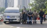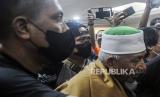 Pimpinan Khilafatul Muslimin Abdul Qadir Baraja (kedua kanan) saat tiba di Mapolda Metro Jaya, Jakarta, Selasa (7/6/2022). Ditreskrimum Polda Metro Jaya menangkap Abdul Qadir Baraja di Lampung setelah ditetapkan sebagai tersangka terkait penyebaran berita bohong yang dapat menimbulkan keonaran dan kegaduhan di tengah masyarakat serta tindak pidana organisasi masyarakat yang bertentangan dengan Pancasila. Republika/Putra M. Akbar (FOTO : Republika/Putra M. Akbar)