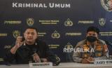 Kabid Humas Polda Metro Jaya Kombes Pol Endra Zulpan (kanan) dan Direskrimum Polda Metro Jaya Kombes Pol Hengki Hariadi (kiri) memberikan keterangan pers terkait pengangkapan Pimpinan Khilafatul Muslimin Abdul Qadir Baraja di Mapolda Metro Jaya, Jakarta, Selasa (7/6/2022). Ditreskrimum Polda Metro Jaya menangkap Abdul Qadir Baraja di Lampung setelah ditetapkan sebagai tersangka terkait penyebaran berita bohong yang dapat menimbulkan keonaran dan kegaduhan di tengah masyarakat serta tindak pidana organisasi masyarakat yang bertentangan dengan Pancasila. (FOTO : Republika/Putra M. Akbar)