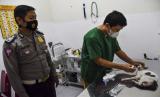 Agus Wahyudi, menyaksikan dokter hewan memeriksa kesehatan kucing yang dievakuasinya di Desa Kertasari, Kecamatan Cijeungjing, Kabupaten Ciamis, Jawa Barat, Selasa (7/6/2022). Sejak tahun 2018 Agus, personel Polres Ciamis yang berpangkat Bripka itu merawat puluhan ekor kucing berpenyakit yang ditemukan di jalan hingga sembuh meski harus menghabiskan biaya Rp50 ribu per hari dan memberikan pakan kepada kucing liar saat pulang dan berangkat kerja. (FOTO : ANTARA/Adeng Bustomi)