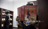 Sejumlah warga membaca buku yang dipajang pada pameran buku Bung Karno di Gedung Indonesia Menggugat, Jalan Perintis Kemerdekaan, Kota Bandung, Rabu (8/6/2022). Pengelola bangunan cagar budaya Gedung Indonesia Menggugat bersama sejumlah komunitas menggelar pameran buku Bung Karno bagi masyarakat untuk menambah wawasan tentang riwayat hidup, perjuangan dan ideologi bapak proklamator sekaligus presiden pertama Republik Indonesia Ir Soekarno. (FOTO : REPUBLIKA/ABDAN SYAKURA)