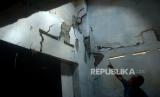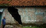 REPUBLIKA.CO.ID, TEGAL -- Warga menunjukkan tembok yang retak akibat bencana tanah bergerak di Desa Kajen, Lebaksiu, Kabupaten Tegal, Jawa Tengah, Rabu (8/6/2022). Menurut pemerintah desa setempat, sebanyak 65 rumah rusak ringan dan tiga rumah rusak berat akibat bencana tanah bergerak dalam empat bulan terakhir.
