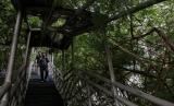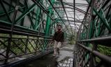 REPUBLIKA.CO.ID, TANGERANG -- Pejalan kaki berjalan di jembatan penyebrangan orang (JPO) yang tidak terawat di Jalan Jendral Sudirman, Kota Tangerang, Banten, Rabu (8/6/2022). Kondisi jembatan penyebrangan yang tak terawat tersebut mengurangi kenyamanan para pejalan kaki yang menggunakannya terlebih saat hujan.