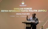 REPUBLIKA.CO.ID, JAKARTA -- Ketua KPU RI Hasyim Asyari memberikan sambutan pada acara uji coba Sistem Informasi Partai Politik (SIPOL) di Jakarta, Kamis (9/6/2022). KPU RI menggelar uji coba SIPOL kepada perwakilan dari partai politik untuk persiapan pendaftaran dan verifikasi partai politik menjelang Pemilu 2024. Republika/Putra M.