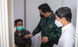 REPUBLIKA.CO.ID, SEMARANG -- Menteri BUMN Erick Thohir memberikan sambutan di sela-sela peninjauan Uji Klinis Fase 3 Vaksin COVID-19 BUMN di Semarang, Jawa Tengah, Kamis (9/6/2022). Vaksin COVID-19 BUMN kolaborasi PT Biofarma, Baylor College of Medicine, dan Eijkman menggunakan platform protein rekombinan sub-unit tersebut ditargetkan memperoleh Izin Edar Darurat (Emergency Use Authorization/UEA) pada Juli 2022 mendatang dengan persiapan kapasitas produksi sebesar 120 juta dosis per tahun.