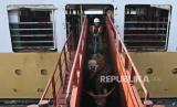 REPUBLIKA.CO.ID,JAKARTA -- Petugas memindahkan sapi asal Nusa Tenggara Timur (NTT) dari Kapal Camara Nusantara ke truk di Pelabuhan Tanjung Priok, Jakarta, Jumat (10/6/2022).
