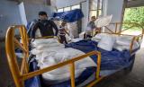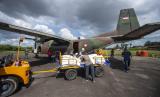 REPUBLIKA.CO.ID,PALEMBANG -- Petugas memindahkan karung yang berisi garam ke dalam pesawat Cassa C-212 milik Skadron IV Lanud Abdulrachman Saleh di Pangkalan Udara Sri Mulyono Herlambang (Lanud SMH) Palembang, Sumatera Selatan, Jumat (10/6/2022).