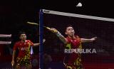 Ekspresi pebulu tangkis ganda putra Indonesia Fajar Alfian/Rian Ardianto seusai mengalahkan ganda putra Taiwan Lee Yang/Wang Chi Lin pada babak perempat final Daihatsu Indonesia Master 2022 di Istora Senayan, Jakarta, Jumat (10/6/2022). Pada pertandingan itu Fajar/Rian menang dengan skor 21-15, 21-18 dan melaju ke babak semifinal. (FOTO : Republika/Edwin Dwi Putranto)