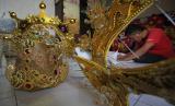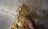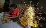REPUBLIKA.CO.ID,SURABAYA -- Perajin Munif Ivon membuat aksesoris adat nusantara di Surabaya, Jawa Timur, Sabtu (11/6/2022).