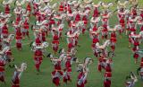 REPUBLIKA.CO.ID,SOLO -- Penari membawa bendera klub sepak bola pada acara pembukaan Piala Presiden 2022 di Stadion Manahan, Solo, Jawa Tengah, Sabtu (11/6/2022).