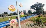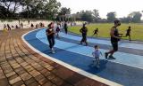 Sejumlah pengunjung berlari di lintasan lari Alun-Alun Cirimekar , Cibinong, Kabupaten Bogor, Jawa Barat, Ahad (12/6/2022). Alun-Alun Cirimekar yang baru dibuka untuk umum tersebut memiliki fasilitas lintasan lari, alat fitnes, serta wahana permainan anak, dan menjadi destinasi wisata baru dalam mengisi libur akhir pekan. (FOTO : ANTARA/Yulius Satria Wijaya)