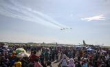 REPUBLIKA.CO.ID, SURABAYA -- Sejumlah pengunjung menyaksikan pameran Alat Utama Sistem Persenjataan (Alutsista) dalam acara "Naval Airbase Open Day" di Apron Hanggar Lanudal Juanda, Surabaya, Jawa Timur, Minggu (12/6/2022). Sejumlah atraksi ditampilkan prajurit TNI AL pada kegiatan "Naval Airbase Open Day" dalam rangka HUT ke-66 Penerbangan TNI AL.