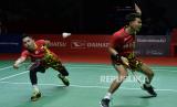 REPUBLIKA.CO.ID, JAKARTA -- Pebulu tangkis ganda putra Indonesia Fajar Alfian/Rian Ardianto mengembalikan kok ke arah ganda putra Cina Liang Wei Keng/Wang Chang pada babak final Daihatsu Indonesia Master 2022 di Istora Senayan, Jakarta, Ahad (12/6/2022). Pada pertandingan itu Fajar/Rian menang dengan skor 21-10, 21-17 dan keluar sebagai juara.