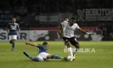 REPUBLIKA.CO.ID, BANDUNG -- Penyerang Persib Bandung David Aparecido Da Silva (kiri) berusaha melewati pemain Bali United pada pertandingan Piala Presiden 2022 di Gelora Bandung Lautan Api (GBLA), Kota Bandung, Ahad (12/6/2022). Dalam pertandingan tersebut Persib Bandung ditahan imbang oleh Bali United dengan skor akhir 1-1. Foto