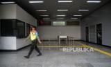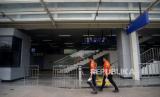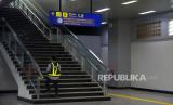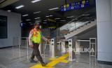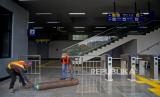 Pekerja beraktivitas di Stasiun Matraman, Jakarta, Senin (13/6/2022). KAI Commuter bersama Direktorat Jenderal Perkeretaapian Kementerian Perhubungan dan KAI Daop 1 Jakarta akan mengoperasikan Stasiun Matraman yang berada di antara lintas Stasiun Manggarai dan Stasiun Jatinegara dan diharapkan dapat menjadi salah satu alternatif bagi pengguna untuk naik dan turun selain di kedua stasiun tersebut. (FOTO : Prayogi/Republika.)