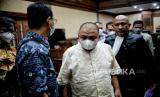 Terdakwa Bupati Langkat nonaktif, Terbit Rencana Perangin Angin bersiap menjalani sidang perdana di Pengadilan Tipikor, Jakarta Pusat, Senin (13/6/2022). Sidang tersebut beragendakan pembacaan surat dakwaan terkait dugaan suap penerimaan hadiah atau janji terkait pengadaan barang dan jasa di Kabupaten Langkat tahun 2020-2022 dengan terdakwa Bupati Langkat nonaktif Terbit Rencana Perangin Angin bersama empat orang lainnya diantaranya Iskandar Perangin Angin serta terdakwa dari pihak swasta yaitu Marcos Surya Abdi, Isfi Syahfitra dan Shuhanda Citra. Republika/Thoudy Badai (FOTO : Republika/Thoudy Badai)