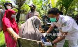 REPUBLIKA.CO.ID, Petugas layanan motor vaksinasi COVID-19 Bhabinkamtibmas Polsek Syamtalira Baru memeriksa kesehatan warga yang akan melakukan vaksinasi COVID-19 di Desa Glong, Aceh Utara, Aceh, Senin (13/6/2022).