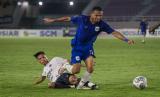 REPUBLIKA.CO.ID, SOLO -- Striker PSIS Semarang Carlos Manuel Dos Santos Fortes berebut bola dengan bek Persita Tangerang Arif Setiawan pada pertandingan Grup A Piala Presiden 2022 di Stadion Manahan, Solo, Jawa Tengah, Senin (13/6/20220). PSIS Semarang menang telak atas Persita Tangerang dengan skor 6-1.