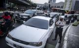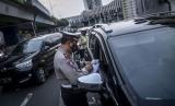 REPUBLIKA.CO.ID, JAKARTA -- Polisi menilang pengendara mobil yang menggunakan pelat nomor genap di kawasan Jalan Kramat Raya, Jakarta, Senin (13/6/2022). Ditlantas Polda Metro Jaya memberlakukan penindakan sanksi tilang terhadap pengendara yang melanggar pembatasan lalu lintas dengan sistem ganjil genap di 25 ruas jalan DKI Jakarta.