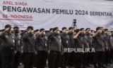 Pengawas pemilu melakukan hormat saat apel siaga pengawasan Pemilu 2024 serentak se-Indonesia di Jakarta, Selasa (14/6/2022). Kegiatan tersebut dalam rangka pemantapan kesiapan jajaran pengawas pemilu menghadapi pelaksanaan setiap tahapan Pemilu 2024. (FOTO : Republika/Putra M. Akbar)
