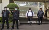 Ketua Bawaslu Rahmat Bagja (kedua kanan) bersiap memimpin apel siaga pengawasan Pemilu 2024 serentak se-Indonesia di Jakarta, Selasa (14/6/2022). Kegiatan tersebut dalam rangka pemantapan kesiapan jajaran pengawas pemilu menghadapi pelaksanaan setiap tahapan Pemilu 2024. Republika/Putra M. Akbar (FOTO : Republika/Putra M. Akbar)