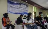 Orang tua murid menunggu untuk berkonsultasi terkait pendaftaran daring Penerimaan Peserta Didik Baru (PPDB) 2022 untuk zonasi tingkat Sekolah Dasar (SD) di Posko Pelayanan PPDB Jakarta Selatan, Selasa (14/6/2022). Dinas Pendidikan DKI Jakarta akan menutup pendaftaran daring PPDB jalur zonasi tingkat SD pada 15 Juni 2022 pukul 14.00 WIB. Republika/Putra M. Akbar (FOTO : Republika/Putra M. Akbar)