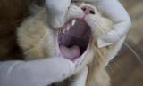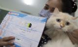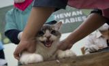 Vaksinator memeriksa gigi dan mulut kucing sebelum disuntik vaksin rabies di halaman Kantor Kelurahan Menteng, Jakarta, Selasa (14/6/2022). Vaksin gratis tersebut diselenggarakan dalam rangka mewujudkan program pemerintah menuju Indonesia bebas rabies 2030. (FOTO : ANTARA/Muhammad Adimaja)