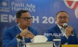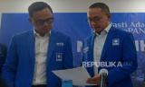 REPUBLIKA.CO.ID, JAKARTA -- Sekjen PAN Eddy Soeparno (kanan) berbincang dengan Ketua Organizing Committee (OC) Rakernas PAN Bima Arya Sugiarto sebelum memberikan keterangan terkait Gerakan PAN Memilih di kantor DPP PAN, Jakarta, Selasa (14/6/2022). Gerakan PAN Memilih merupakan gerakan untuk menjaring aspirasi Kader PAN di seluruh Indonesia untuk memilih Capres dan Cawapres yang akan diusung di Pemilu 2024.