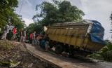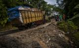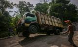 REPUBLIKA.CO.ID, Sebuah Truk mengalami gangguan mesin di sebuah jalan yang amblas di Cikulur, Lebak, Banten, Selasa (14/6/2022). Hujan deras yang mengguyur kawasan tersebut menyebabkan penghubung jalan antarkabupaten Lebak-Pandeglang tersebut amblas dan sering menimbulkan korban jiwa akibat kendaraan tidak kuat menanjak sehingga terjatuh ke jurang.
