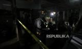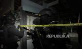 REPUBLIKA.CO.ID, BANYUMAS -- Petugas kepolisian memasang garis polisi di sekitar lokasi rumah warga yang hancur akibat ledakan di Desa Randegan, Kebasen, Banyumas, Jawa Tengah, Selasa (14/6/2022). Polisi masih melakukan olah TKP untuk menentukan sumber ledakan dan jenis bahan peledak yang menyebabkan satu orang meninggal serta dua rumah rusak.