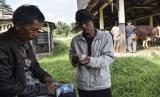 Pedagang melakukan transaksi jual beli ternak sapi di Pasar Hewan Manonjaya, Kabupaten Tasikmalaya, Jawa Barat, Rabu (15/6/2022). Pasar hewan tersebut membatasi pedagang dari luar daerah dengan kewajiban menunjukan Surat Keterangan Kesehatan Hewan (SKKH) guna mencegah penyebaran Penyakit Mulut dan Kuku (PMK). (FOTO : ANTARA/Adeng Bustomi)