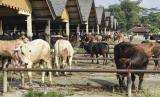 REPUBLIKA.CO.ID,TASIKMALAYA -- Pedagang ternak sapi mununggu calon pembeli di Pasar Hewan Manonjaya, Kabupaten Tasikmalaya, Jawa Barat, Rabu (15/6/2022).