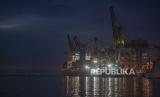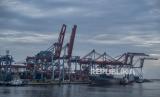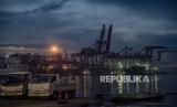 REPUBLIKA.CO.ID, JAKARTA -- Suasana aktivitas bongkar muat peti kemas di Pelabuhan Tanjung Priok, Jakarta, Rabu (15/6/2022). Badan Pusat Statistik (BPS) mencatat neraca perdagangan Indonesia pada Mei 2022 mengalami surplus 2,90 miliar dolar AS dengan nilai ekspor 21,51 miliar dolar AS dan impor 18,61 miliar dolar AS.