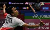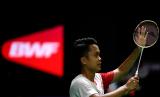 REPUBLIKA.CO.ID, JAKARTA -- Pebulu tangkis tunggal putra Indonesia Anthony Sinisuka Ginting memberikan salam ke penonton seusai mengalahkan tunggal putra Denmark Hans Kristian Solberg Vittinghus dalam babak 16 besar Indonesia Open 2022 di Istora Senayan, Jakarta, Kamis (16/6/2022). Ginting lolos ke perempat final setelah menang 21-17 dan 21-9.