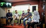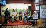 Ketua Tebar Hewan Kurban Dompet Dhuafa, Dian Mulyadi (kiri), Peternak Mitra Kurban Dompet Dhuafa Eko Aris Setyawan (kedua kiri), Dokter Hewan Dian Ariesiana Widiastuti (tengah) dan Kepala Ekonom The Indonesia Economic Intelligence Surnarsip (kedua kanan) saat konferensi pers terkait Kurban di Jakarta, Kamis (16/6/2022). Konferensi pers tersebut membahas tentang langkah antisipasi Dompet Dhuafa dalam mengatasi penyebaran wabah PMK menjelang Idul Adha 1443 H. Selain itu, Dompet Dhuafa menggelar program Tebar Hewan Kurban dengan target pendistribusian sebanyak 40.000 hewan kurban ke berbagai wilayah di lokasi 3T (terpencil, tertinggal dan terluar). Republika/Thoudy Badai (FOTO : Republika/Thoudy Badai)