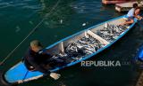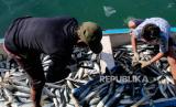 REPUBLIKA.CO.ID, JAYAPURA -- Seorang nelayan membongkar muatan ikan momar (ikan layang) dari perahunya di dermaga Kampung Nelayan Hamadi, Jayapura, Papua, Kamis (16/6/2022).