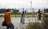 REPUBLIKA.CO.ID, Warga berfoto dengan latar belakang Monumen Nasional (Monas), Jakarta, Kamis (16/6/2022). Pemprov DKI Jakarta menjanjikan akan membuka kembali kawasan Monas untuk umum dalam pekan ini yang sebelumnya ditutup sementara sejak 2020 karena pandemi COVID-19. ANTARA FOTO/M Risyal Hidayat