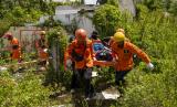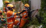 REPUBLIKA.CO.ID, Personel Basarnas dan Tim SAR Gabungan menandu seorang korban yang dievakuasi dari reruntuhan bangunan pada Uji Pelaksanaan Operasi SAR di lokasi bekas likuifaksi Petobo, Palu, Sulawesi Tengah, Kamis (16/6/2022).