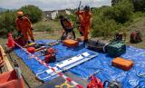 Personel Basarnas menyiapkan peralatan untuk mengevakuasi korban yang terperangkap di reruntuhan bangunan pada Uji Pelaksanaan Operasi SAR di lokasi bekas likuifaksi Petobo, Palu, Sulawesi Tengah, Kamis (16/6/2022). Uji Pelaksanaan Operasi SAR itu dilakukan untuk mengetahui tingkat kecepatan, kesiapan peralatan, kesiagaan petugas dan koordinasi dalam operasi SAR. (FOTO : ANTARA/Basri Marzuki)