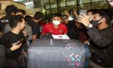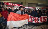 REPUBLIKA.CO.ID, TANGERANG -- Pendukung Timnas Indonesia ikut menyambut kedatangan para pemain setibanya dari Kuwait di Terminal 3 Bandara Soekarno Hatta, Tangerang, Banten, Kamis (16/6/2023). Timnas Sepak Bola Indonesia berhasil lolos ke Piala Asia 2023 setelah pada pertandingan terakhir kualifikasi Piala Asia mengalahkan Nepal 7 - 0.