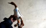 Pengerajin mengecat kerajinan bebek dari bonggol bambu di Ceper, Klaten, Jawa Tengah, Jumat (17/6/2022). Sebagian besar produksi kerajinan bebek ini untuk memenuhi pasar ekspor ke Eropa. Sedangkan pasar domestik hanya untuk Bali. Kerajinan untuk eskpor bervariasi mengikuti pesanan dari konsumen pemesan. Harga yang dipatok pengerajin bervariasi mulai Rp 75 ribu hingga Rp 250 ribu. (FOTO : Wihdan Hidayat / Republika)