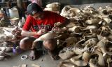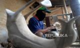 Pengerajin mengerjakan pesanan kerajinan bebek dari bonggol bambu di Ceper, Klaten, Jawa Tengah, Jumat (17/6/2022). Sebagian besar produksi kerajinan bebek ini untuk memenuhi pasar ekspor ke Eropa. Sedangkan pasar domestik hanya untuk Bali. Kerajinan untuk eskpor bervariasi mengikuti pesanan dari konsumen pemesan. Harga yang dipatok pengerajin bervariasi mulai Rp 75 ribu hingga Rp 250 ribu. (FOTO : Wihdan Hidayat / Republika)
